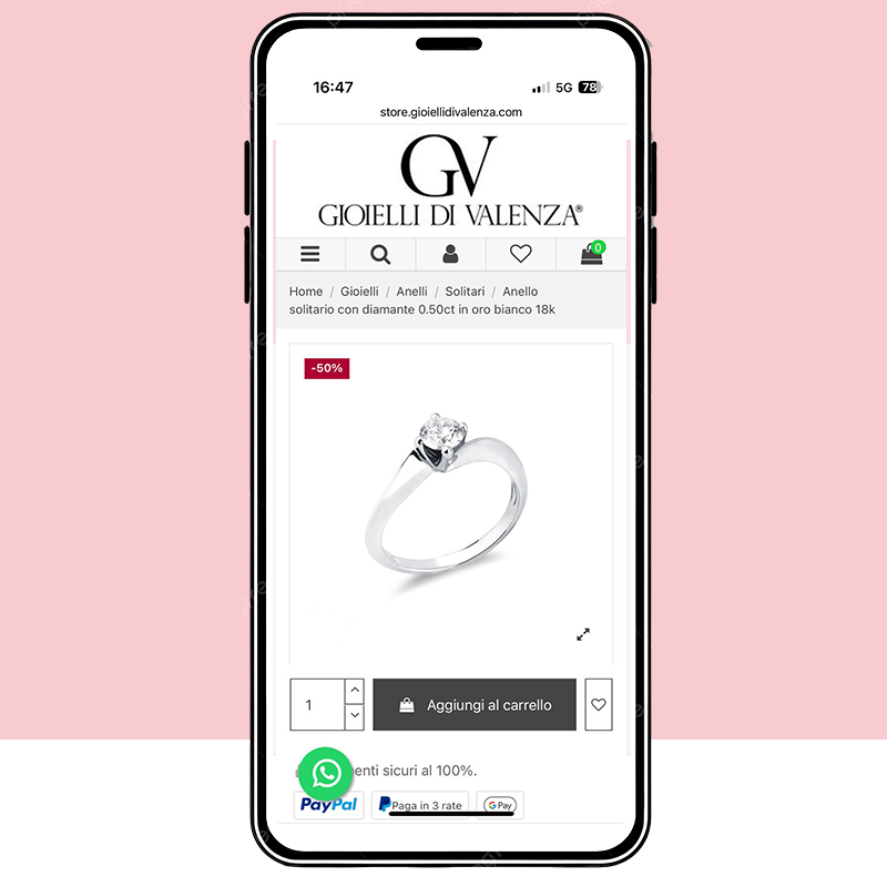 Visita la pagina del gioiello che desideri acquistare per scoprire l'importo delle 3 o 4 rate. Seleziona poi "Aggiungi al carrello" per procedere con l'acquisto.